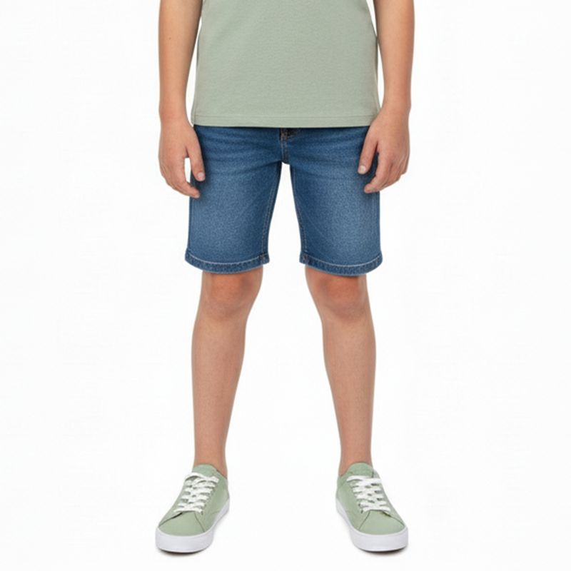A Bermuda jeans médio reta infantil é perfeita para acompanhar o dia a dia das crianças com estilo e conforto. Confeccionada em jeans leve e resistente, ela traz modelagem clássica com cós ajustável, bolsos funcionais e fechamento por botão e zíper. O tom azul médio com leve efeito estonado dá um toque moderno e versátil, ideal para combinar com camisetas e polos em qualquer ocasião — seja para passeios, escola ou momentos de lazer.