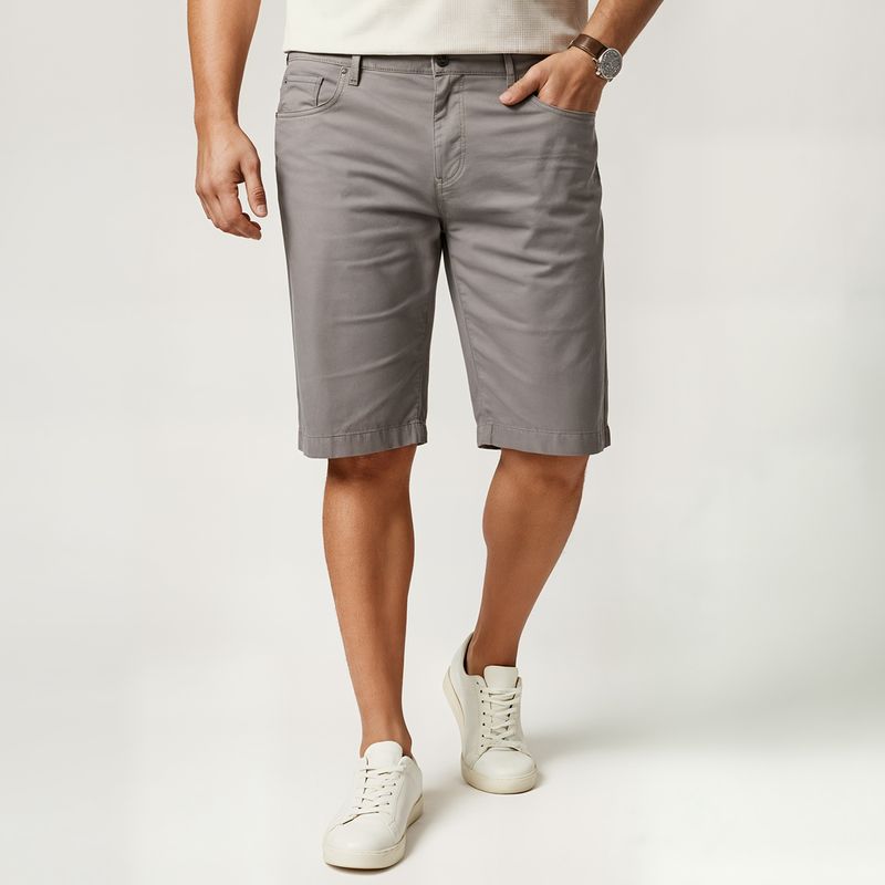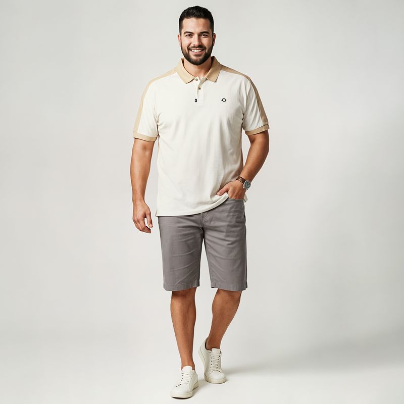 Bermuda masculina plus size em sarja, clássica e versátil, ideal para compor looks modernos e elegantes no dia a dia. Confeccionada em tecido resistente e confortável, conta com bolsos funcionais frontais e traseiros, além de passantes para cinto que garantem praticidade e estilo. O tom neutro facilita combinações com camisas, camisetas e polos, sendo perfeita para ocasiões casuais e também para produções mais arrumadas.