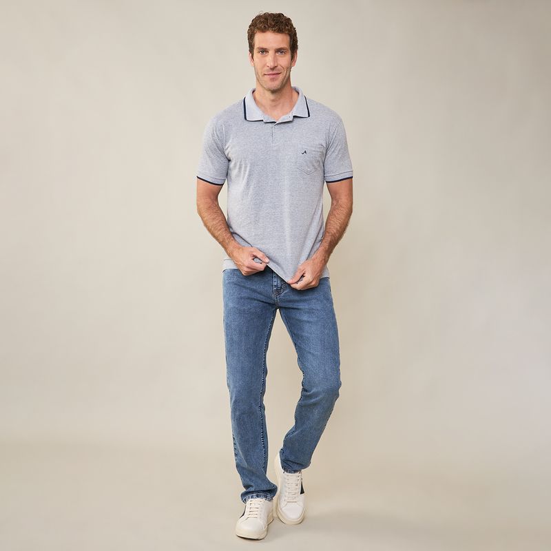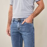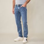 Calça jeans masculina azul com modelagem reta, ideal para compor looks modernos e versáteis. Confeccionada em denim resistente com toque confortável, oferece praticidade para o dia a dia. Possui bolsos frontais e traseiros funcionais, passantes para cinto e fechamento em zíper e botão. Uma peça coringa no guarda-roupa masculino, perfeita para combinações casuais ou para um estilo mais alinhado.