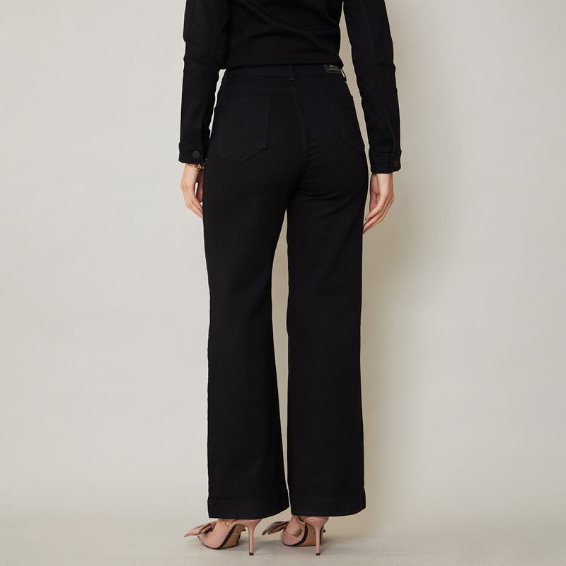 A calça wide leg preta é a peça ideal para unir conforto e estilo com um toque de modernidade. Com modelagem ampla, cintura alta e acabamento sofisticado, ela proporciona liberdade de movimento e um visual contemporâneo. Perfeita para composições urbanas, casuais ou elegantes, valorizando a silhueta de forma autêntica.