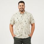 Camisa masculina de manga curta com estampa de folhagens em fundo off white, perfeita para compor looks frescos e despojados. O caimento confortável e o visual tropical a tornam ideal para dias quentes, passeios ao ar livre, encontros casuais e produções de fim de semana.