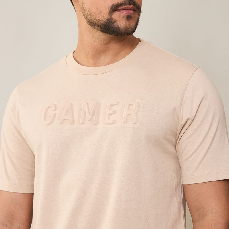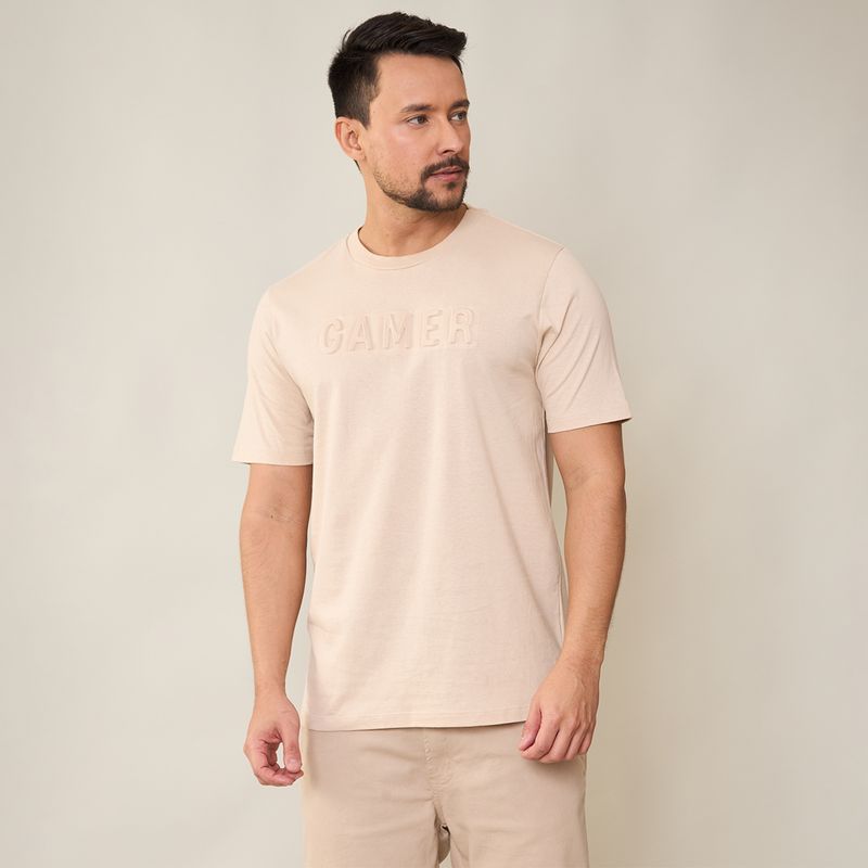 Moderna e despojada, esta camiseta masculina traz a palavra "Gamer" em relevo, ideal para quem curte estilo com personalidade. Confeccionada em malha macia de toque suave, possui modelagem reta, gola careca e mangas curtas. Perfeita para compor looks casuais com jeans ou bermuda, unindo conforto e atitude em uma peça básica com diferencial.