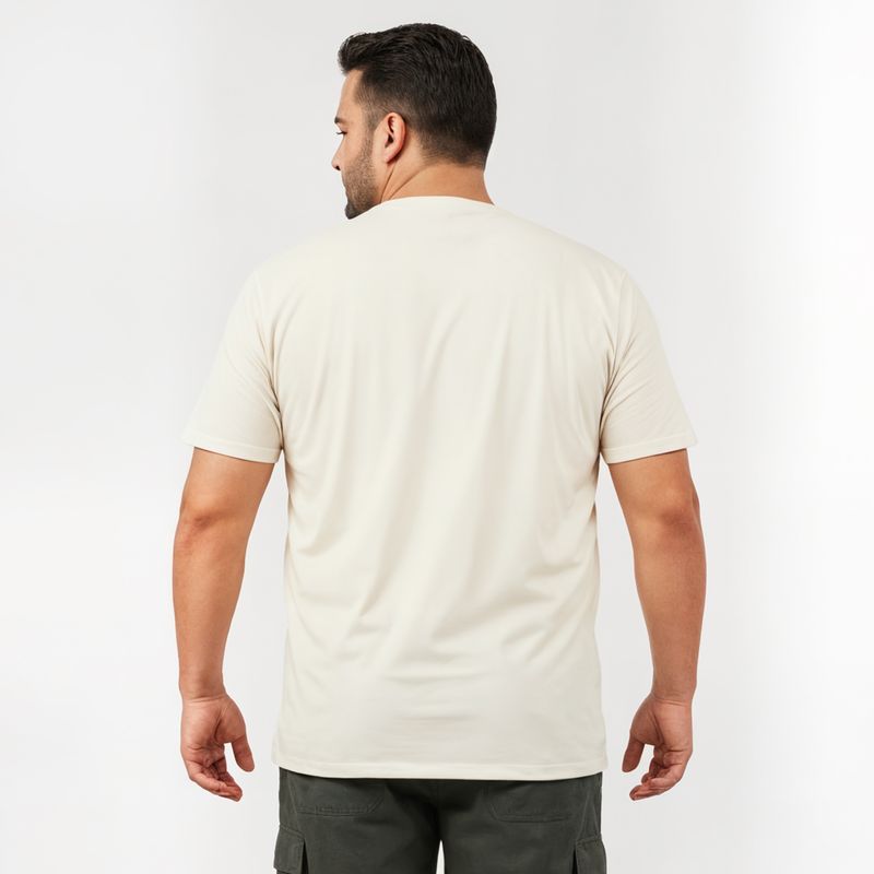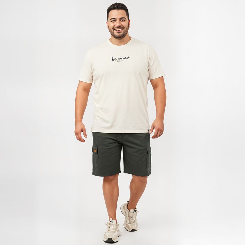 A camiseta masculina plus size off white com estampa minimalista é perfeita para quem busca conforto e estilo no dia a dia. Confeccionada em malha de algodão macia e respirável, possui modelagem ampla que garante caimento leve e confortável. A estampa discreta no centro adiciona um toque moderno e versátil, ideal para compor looks casuais com bermudas ou calças jeans.