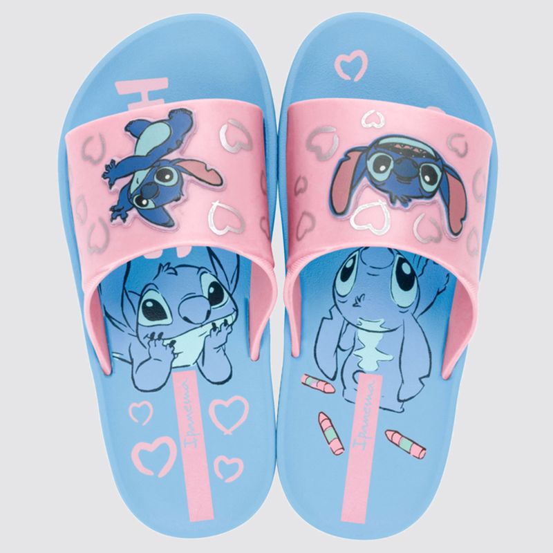 Chinelo slide infantil ipanema Stitch azul e rosa, feito para trazer praticidade, conforto e diversão ao dia a dia das crianças. Com design moderno no estilo slide, possui estampa exclusiva do personagem Stitch e detalhes em corações que deixam o visual alegre e cheio de personalidade. Fabricado em material macio e resistente, é fácil de calçar, leve e confortável, perfeito para usar em casa, passeios ou momentos de lazer. O solado antiderrapante garante mais segurança e estabilidade durante o uso.
