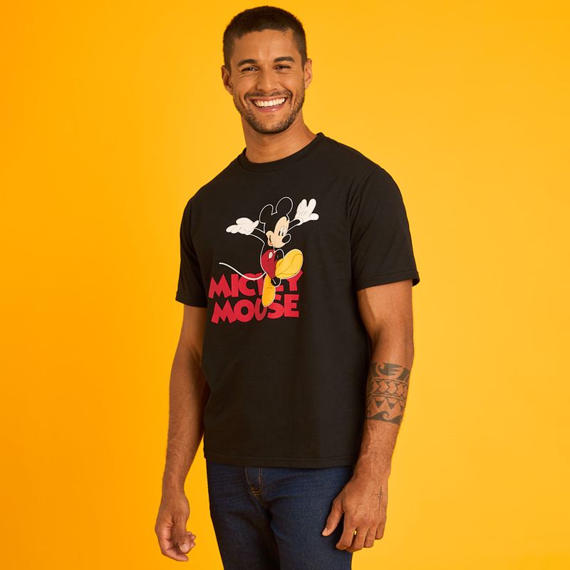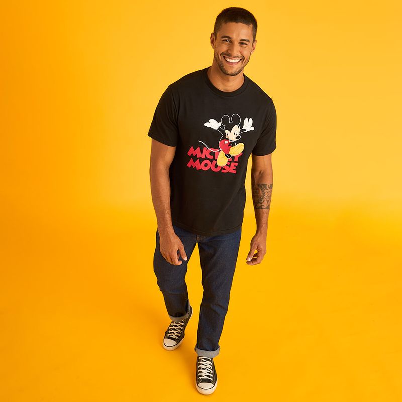 A Camiseta masculina Mickey Mouse preta Disney combina conforto, estilo e nostalgia em uma peça versátil. Com estampa frontal clássica do Mickey e tipografia retrô, é perfeita para quem ama o personagem mais icônico da Disney. Feita em malha de algodão macia, possui modelagem regular, gola careca e toque suave que garante conforto no dia a dia. Ideal para compor looks casuais com jeans, bermudas ou jaquetas.