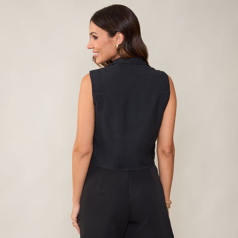 O colete alfaiataria feminino é a escolha perfeita para quem busca elegância e modernidade em uma única peça. Confeccionado em tecido leve com ótimo caimento, possui gola de lapela, fechamento por botões frontais e modelagem reta que valoriza a silhueta. Versátil, pode ser usado sozinho para um visual sofisticado ou combinado com camisas e blusas para composições de trabalho ou ocasiões especiais.