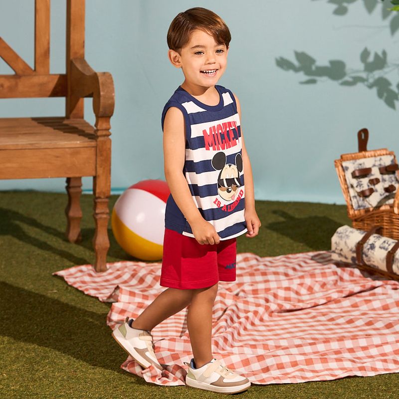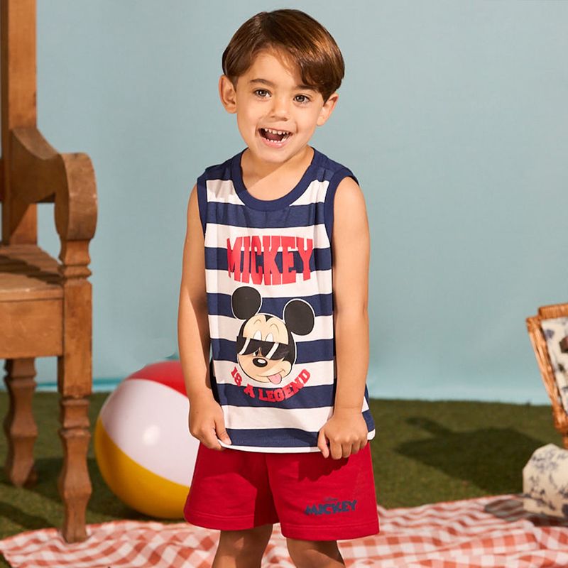 Conjunto infantil mickey disney composto por regata listrada com estampa divertida do personagem e bermuda em malha confortável. A regata possui modelagem soltinha e moderna, perfeita para dias quentes, enquanto o shorts com cós elástico garante praticidade e liberdade de movimentos. Um look completo, leve e descontraído para os pequenos fãs do Mickey aproveitarem com muito estilo.