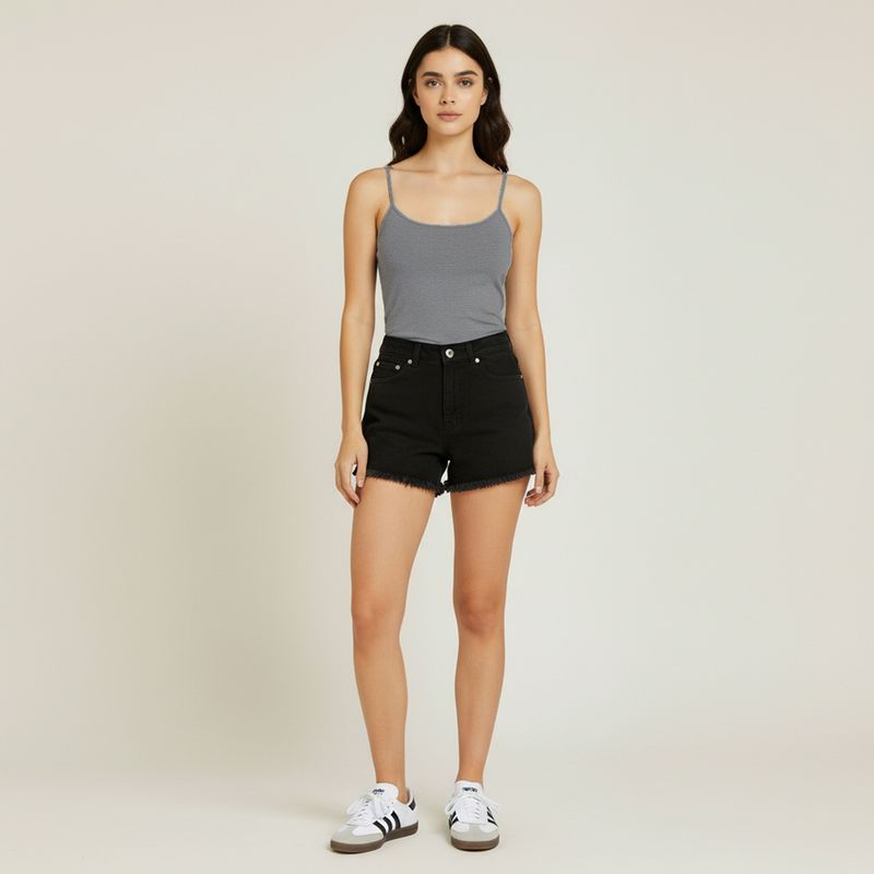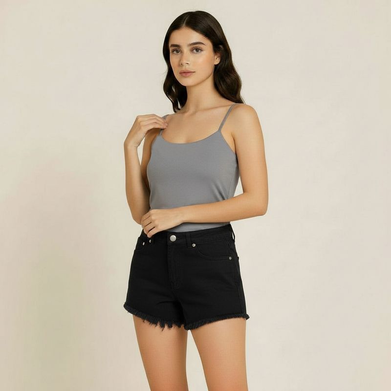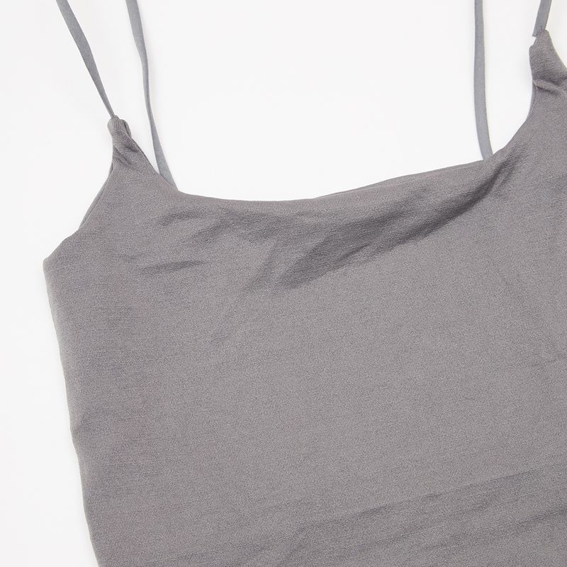 A regata feminina canelada cinza com alças finas é uma peça versátil para compor looks minimalistas e modernos. Seu caimento ajustado valoriza o corpo e permite combinações com jeans, alfaiataria ou sobreposições, perfeita para o dia a dia e ocasiões casuais.
