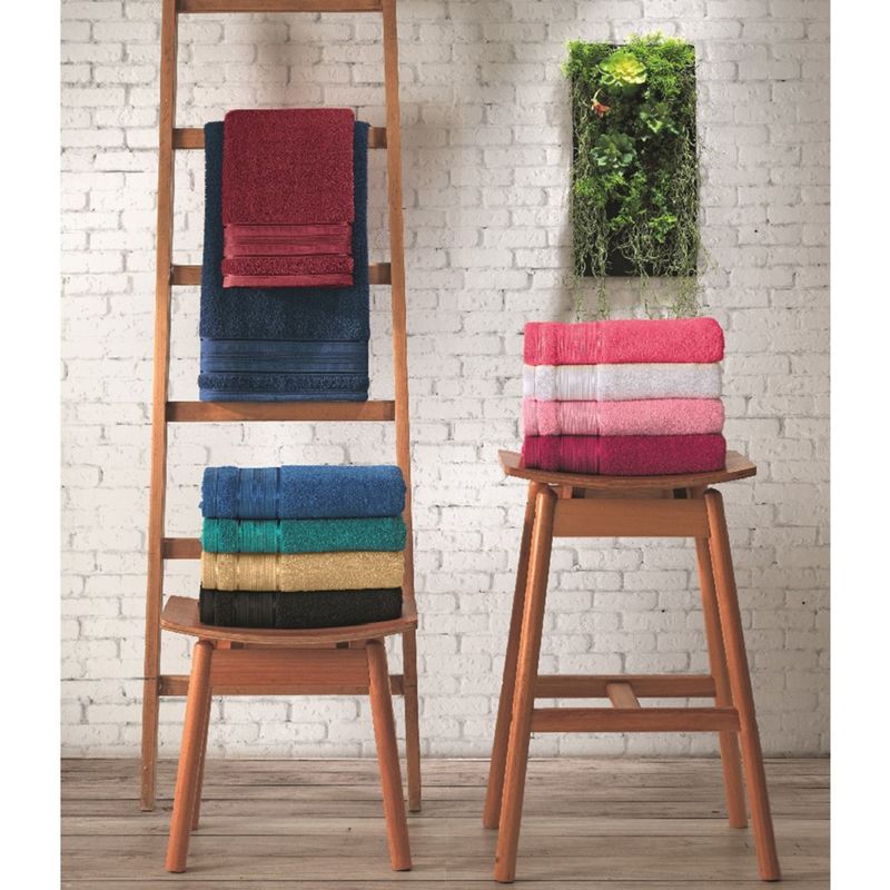 Aposte em mais cor e conforto para o seu dia a dia com a toalha de banho. Produzida em 100% algodão, ela garante toque suave, alta absorção e ótima durabilidade. Seu design conta com barra decorativa em brilho acetinado que valoriza ainda mais o visual do banheiro. Ideal para uso pessoal ou para compor kits de presente com charme e funcionalidade.