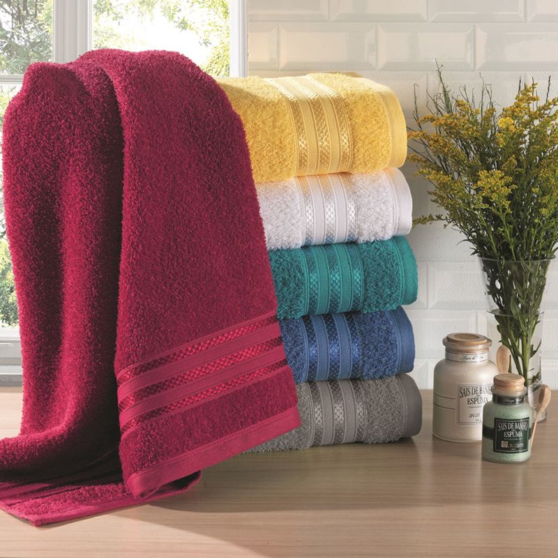 Aposte em mais cor e conforto para o seu dia a dia com a toalha de banho. Produzida em 100% algodão, ela garante toque suave, alta absorção e ótima durabilidade. Seu design conta com barra decorativa em brilho acetinado que valoriza ainda mais o visual do banheiro. Ideal para uso pessoal ou para compor kits de presente com charme e funcionalidade.